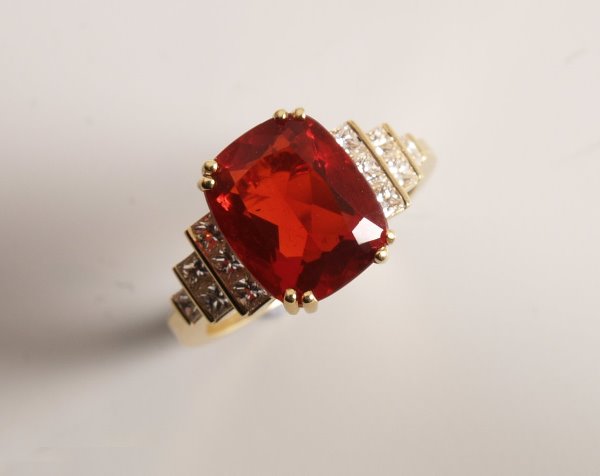 18ct gold mounted rectangular cut cornered fire op