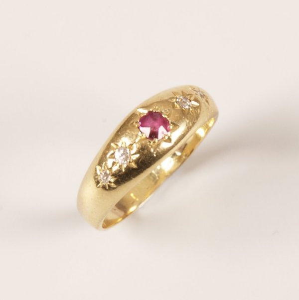 18ct gold ruby and old cut diamond five stone gypsy