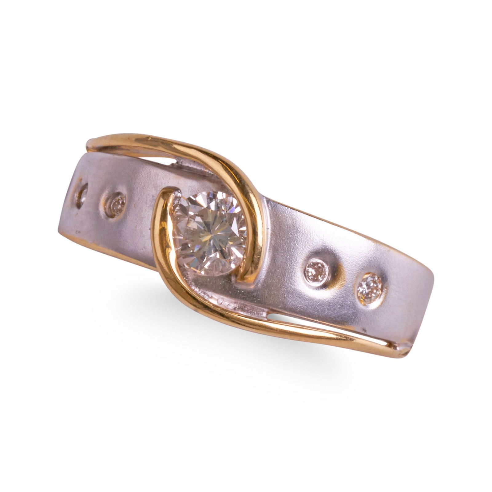 18CT YELLOW AND WHITE GOLD DIAMOND RING.