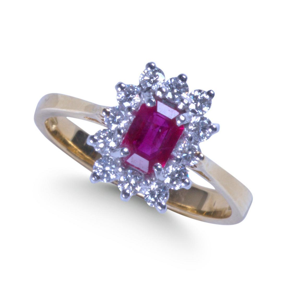 18ct Yellow And White Gold, Ruby And Diamond Cluster Ring.