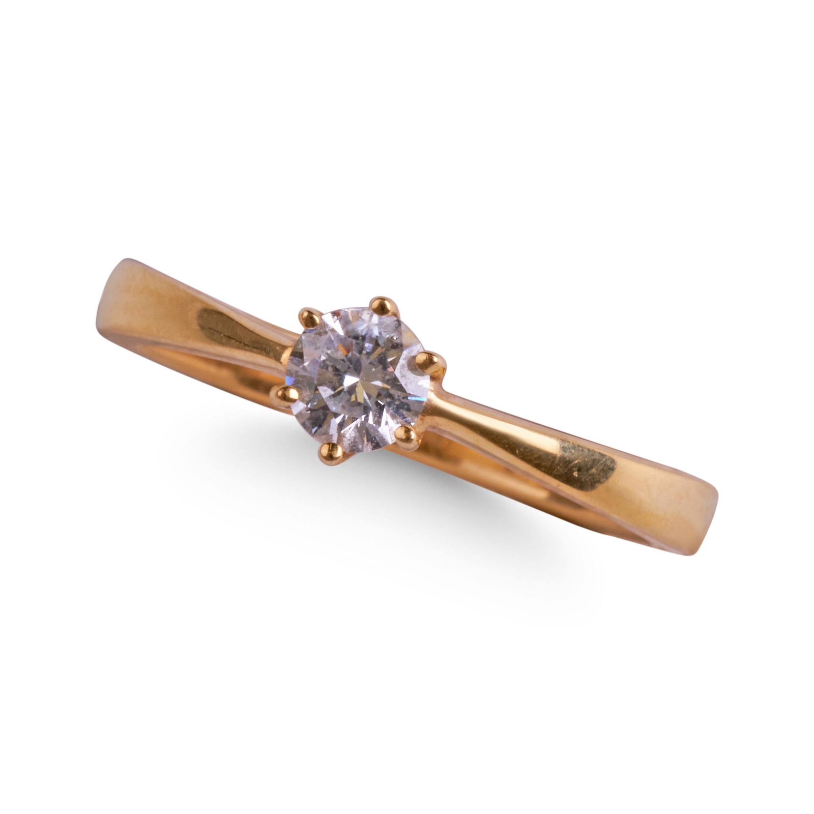 18CT YELLOW GOLD DIAMOND SINGLE STONE RING.