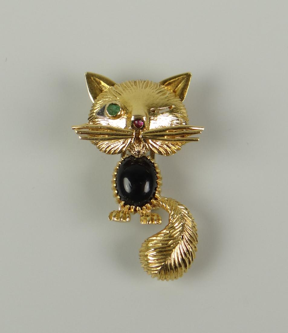 Whimsical Lion Cat Brooch in 18K Yellow Gold with Diamonds Sapphires and EmeraldsDiamond Depot4.3(10)$1,75014 hrs Left