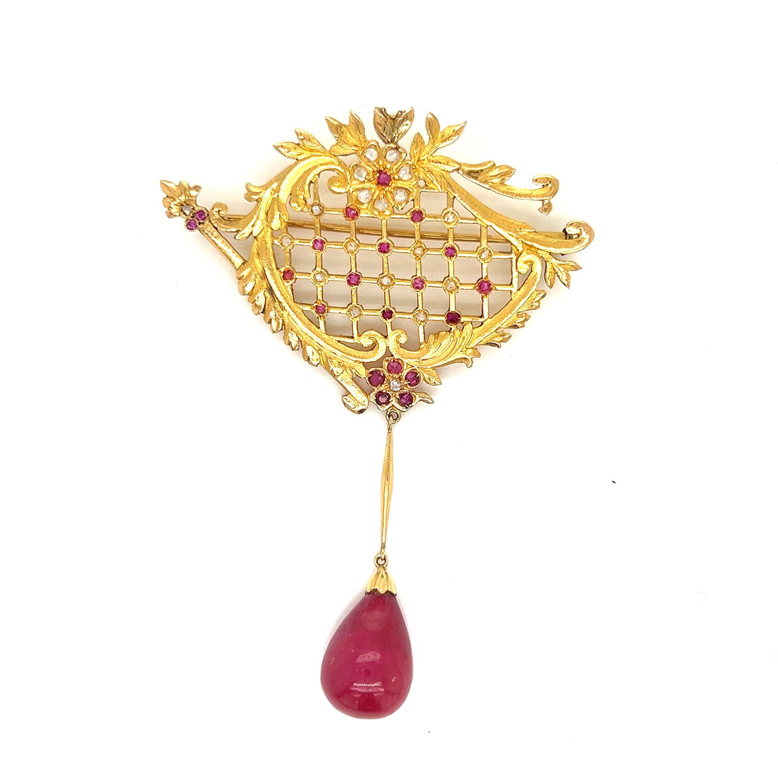18K Yellow Gold and Silver 6.25ct Diamond and Ruby BroochEastern European Art Gallery Inc$8,0004 days Left