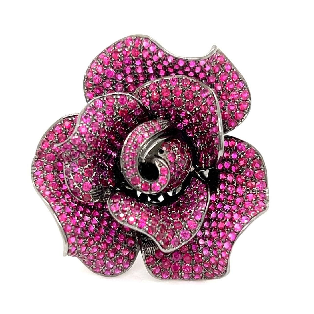 18K Blacken Gold Ruby Flower Cocktail Ring