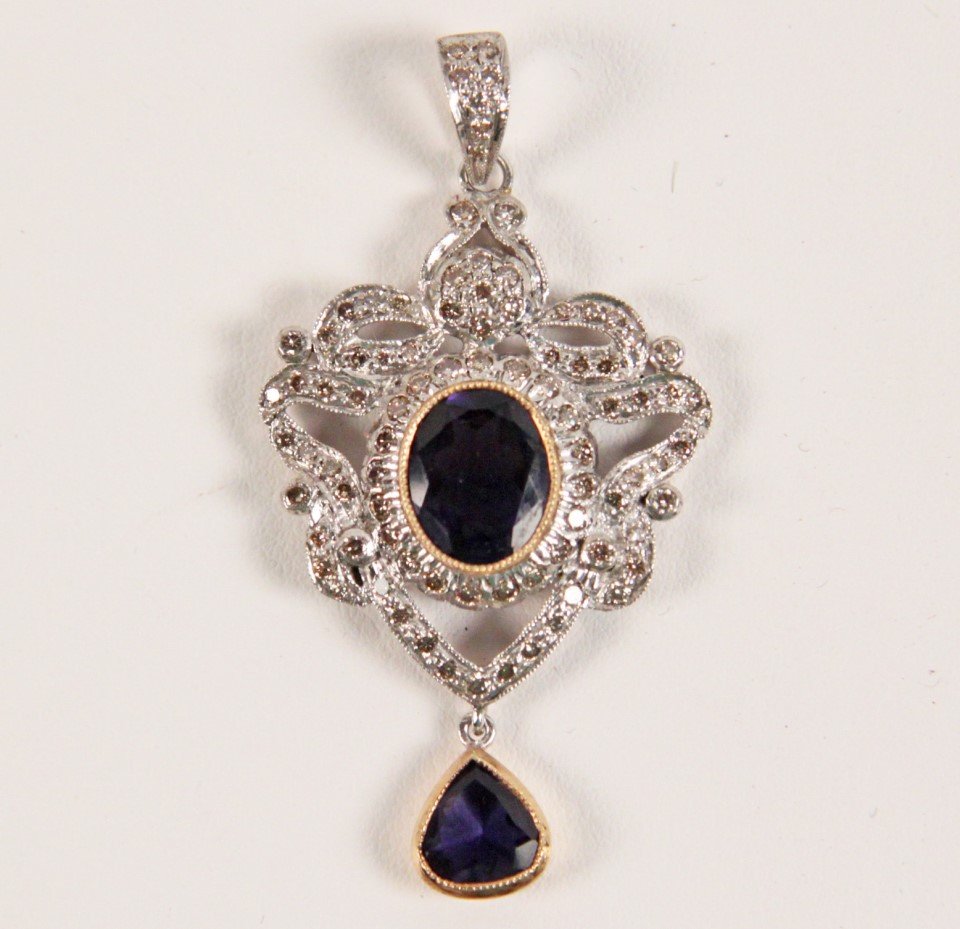 14k Gold 1.20ct Sapphire 3ct Diamond Pendant