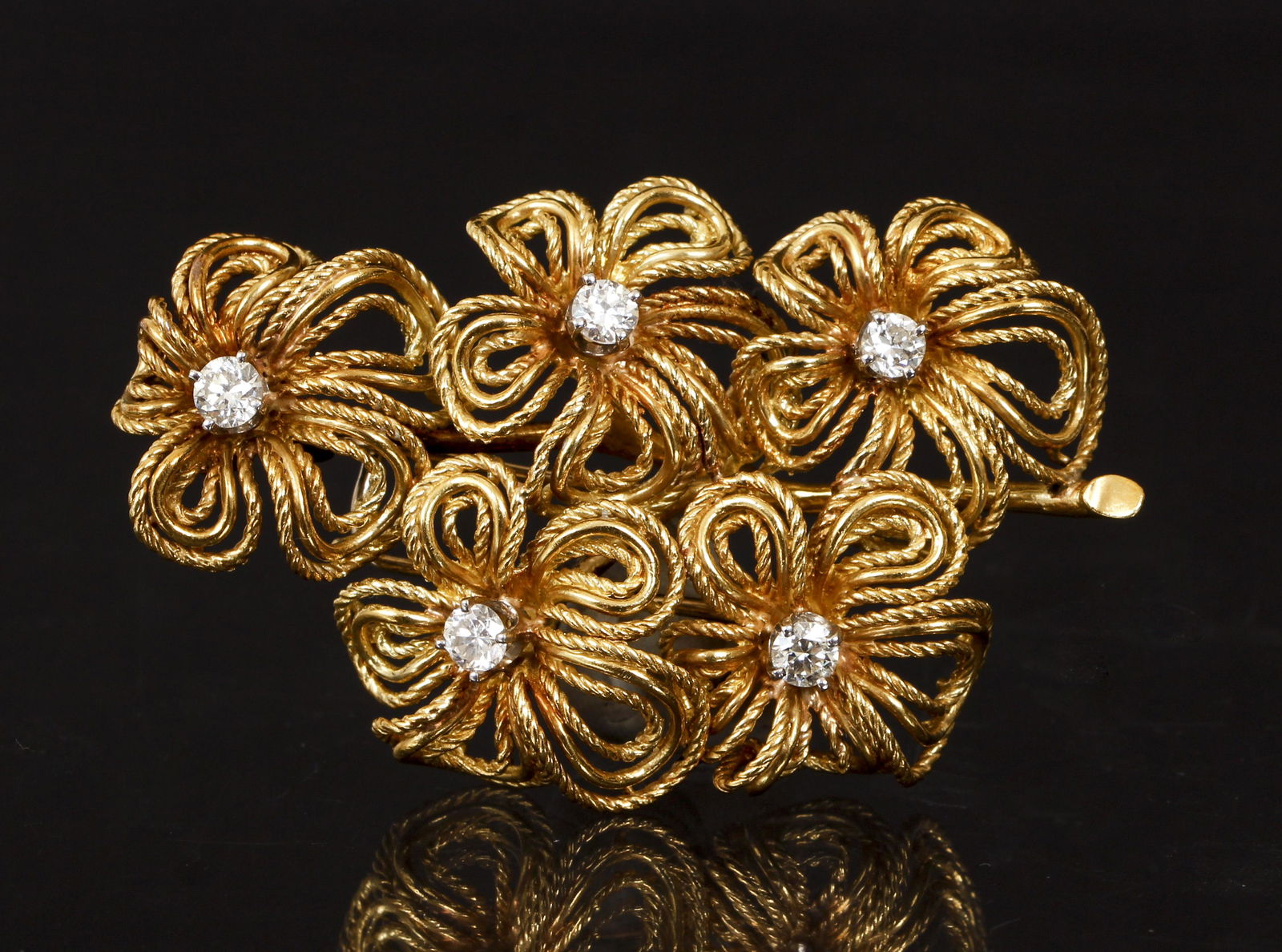 Brooch - 18 kt. Yellow gold, Exclusive 18K Yellow Gold 7.00ct Diamond-Set Floral Brooch - 7.00ct.Eastern European Art Gallery Inc$9,0003 hrs Left