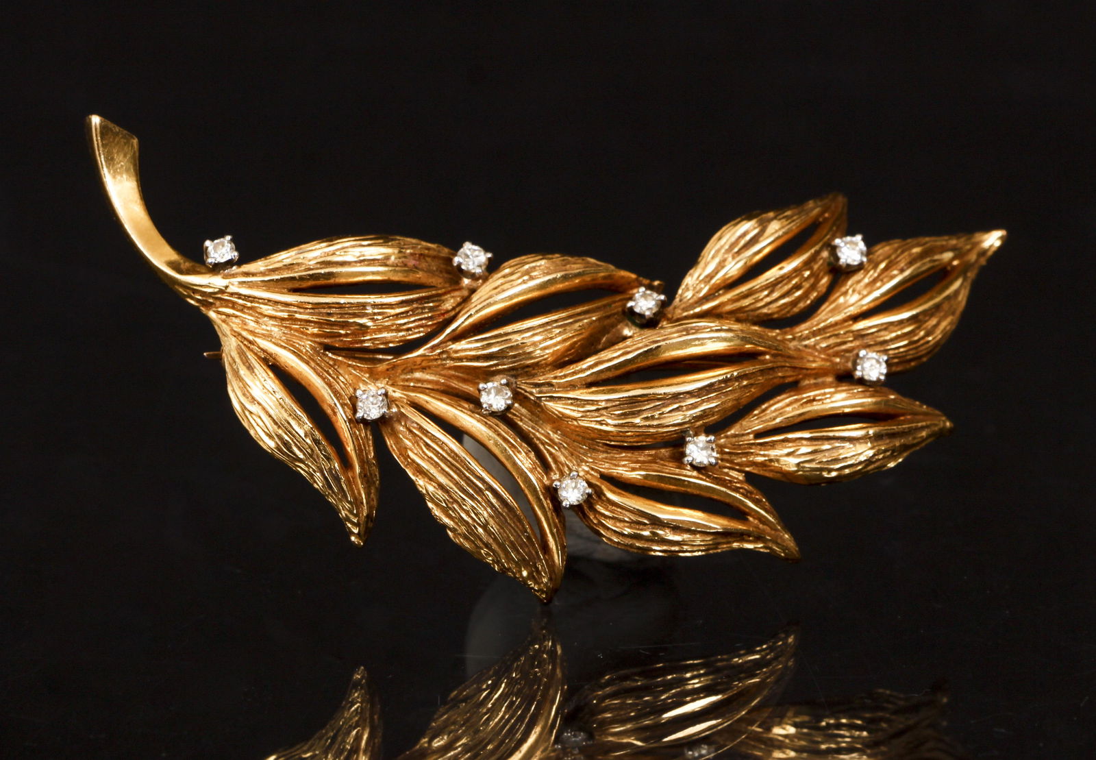 Vintage 1960's Diamond Two-Tone Leaf Branch Brooch Pin 14K Yellow Gold, 14.24 GrChairish Auctions4.5(10.4k)$1,500