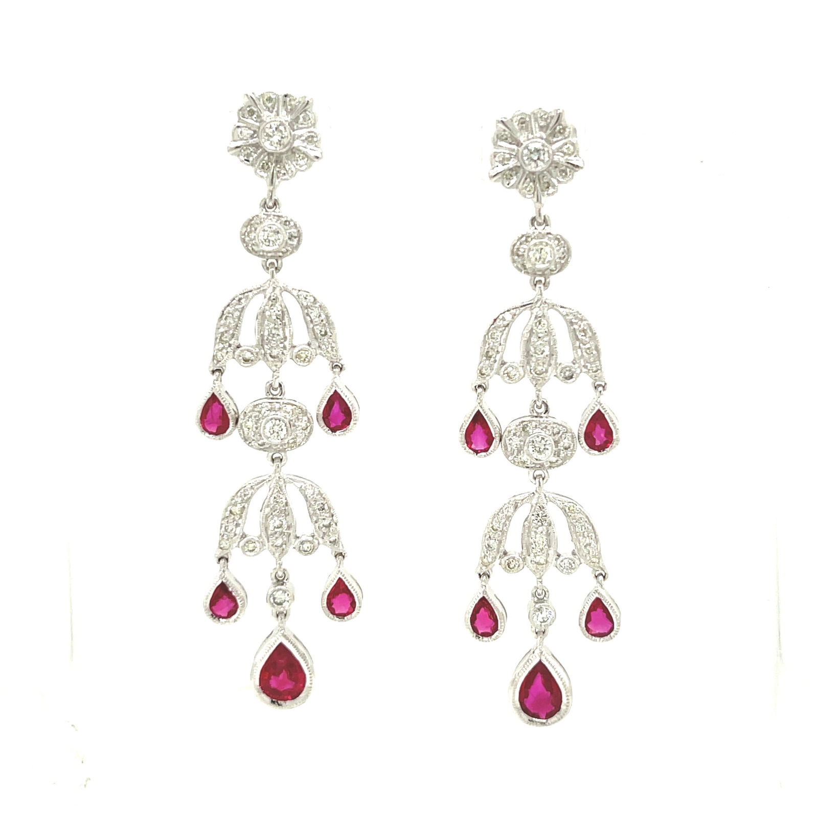 18K White Gold Ladies Earrings with 17.11ct Rubies and 4.96ct tw Adjacent DiamondsRiverside Galleries4.4(203)$502 days Left