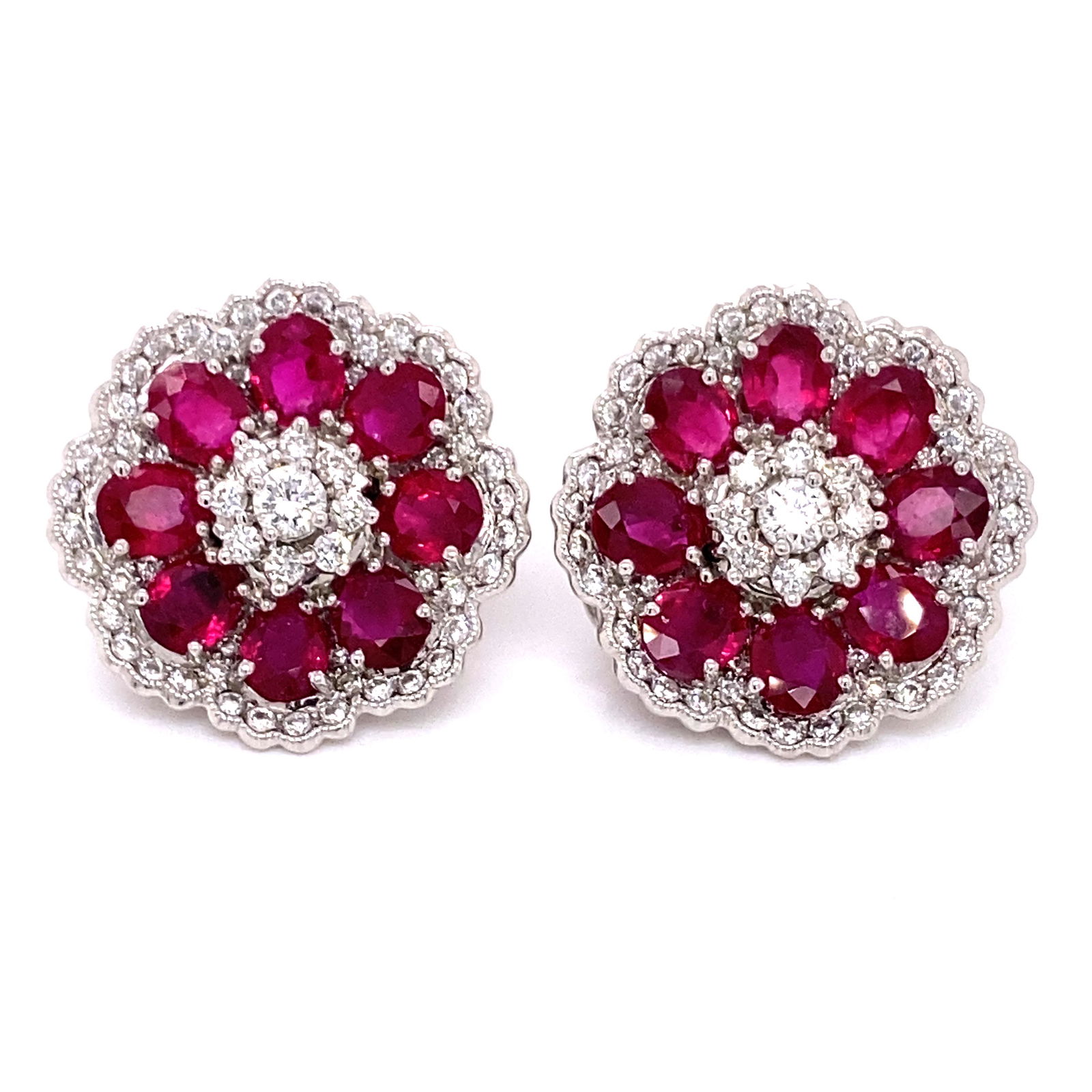 18K White Gold Ladies Earrings with 17.11ct Rubies and 4.96ct tw Adjacent DiamondsRiverside Galleries4.4(200)$502 days Left