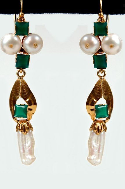 18K emerald and pearl earrings