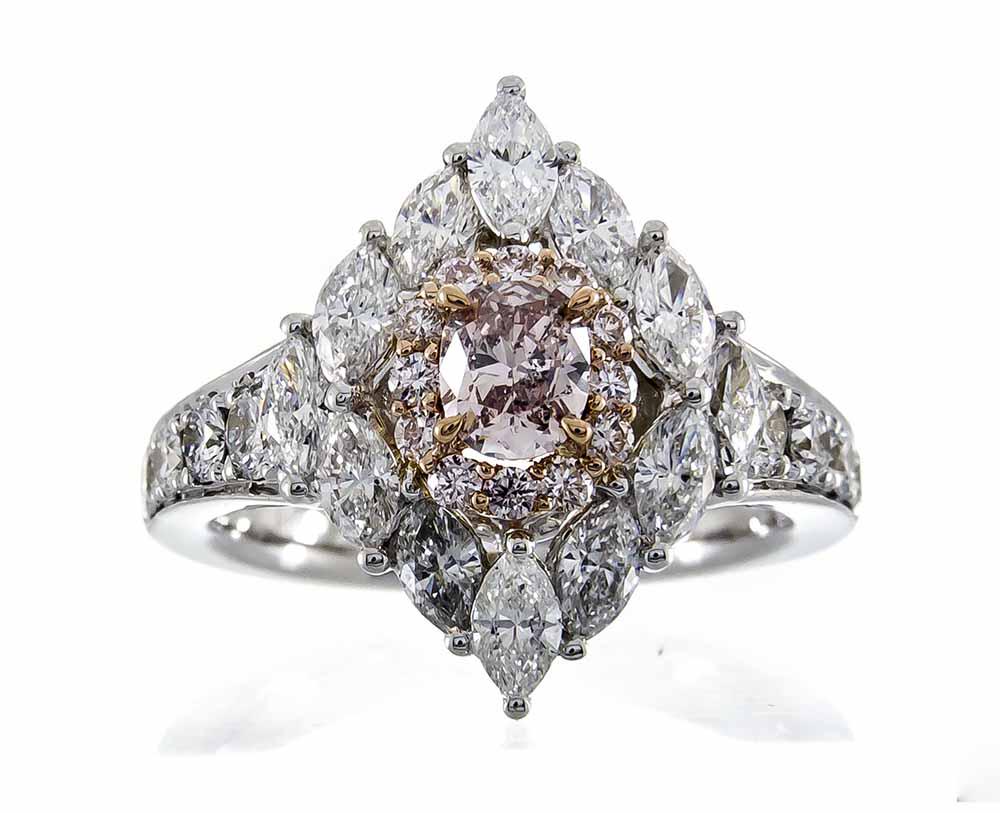 SoldGIA Fancy Light Purplish Pink Diamond RingGIA Certified .53ct Rectangular Pink Diamond Surrounded By Approximately .91ct Diamonds Set In 18k White Gold. 3.3g Total Weight, Size 6.5. Scroll Through All Photos To View Gia Information. Jewelry MSee Sold Price