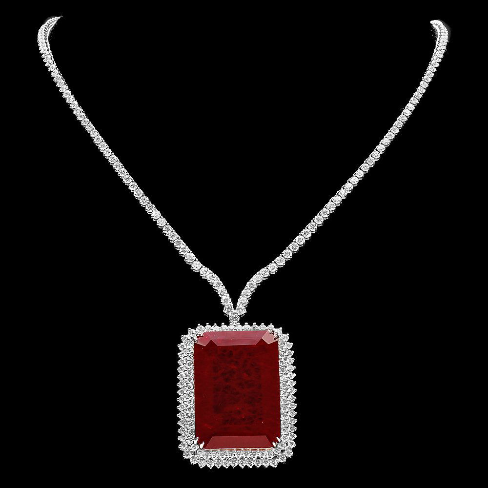 14k Gold 65.5ct Ruby 1.35ct Diamond Necklace