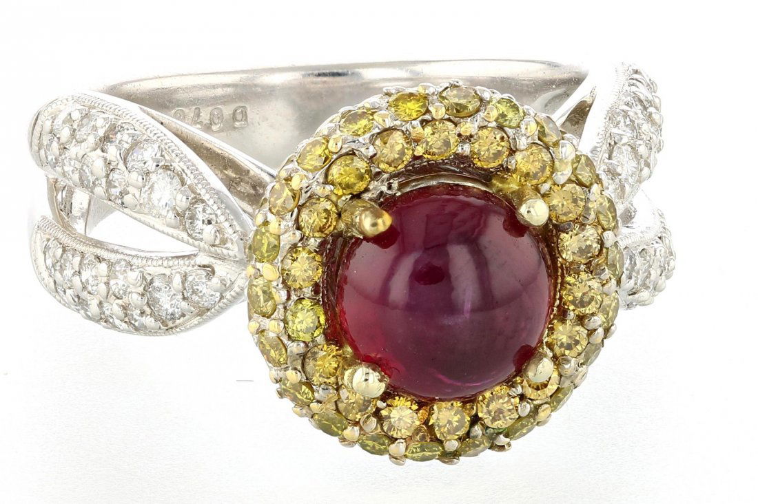 18k gold 2.35ct Cabochon Ruby with 1.55ct Diamond Ring