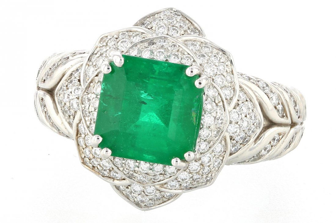 18k Gold 2.51ct Octagonal Emerald 0.75ct Diamond Ring