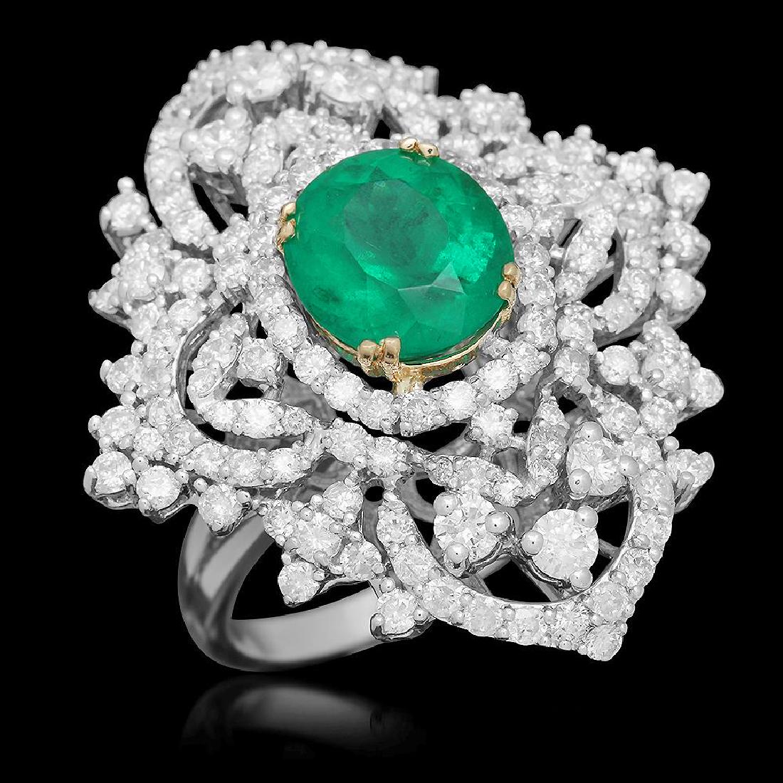 14K White Gold 3.33ct Emerald and 3.26ct Diamond Ring