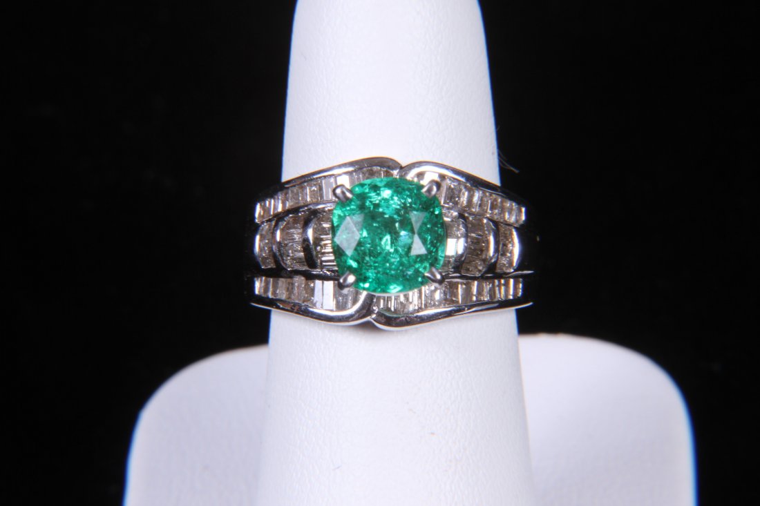 Emerald Diamond Ring 1.36Ct 14k W/g