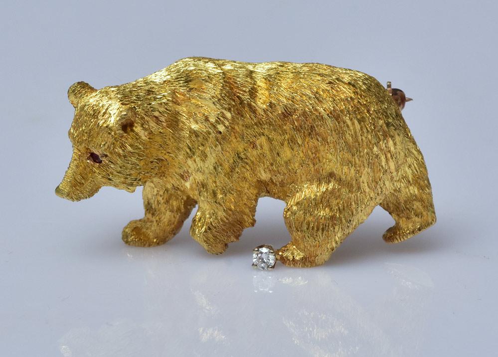 18k Gold Bear Brooch