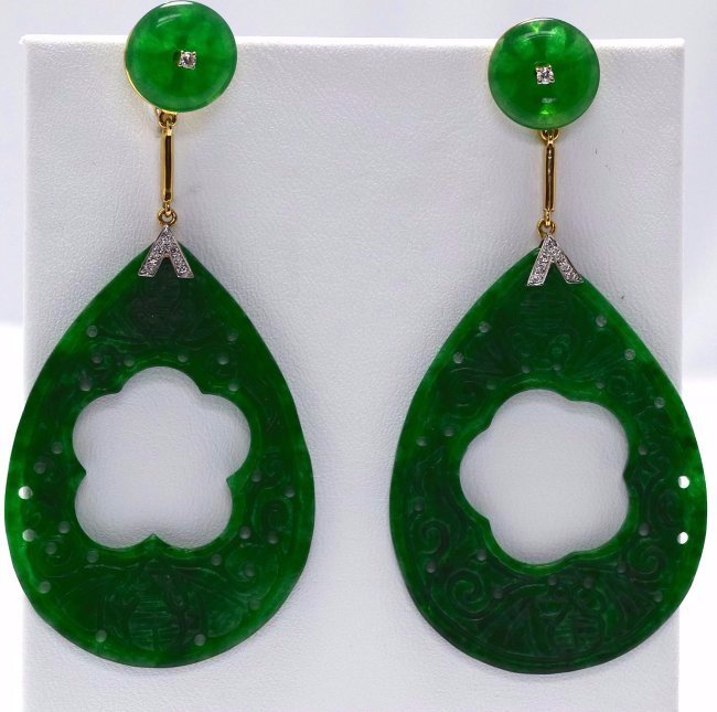 14K Gold 3.28ct Emerald 3.12ct Diamond Earrings