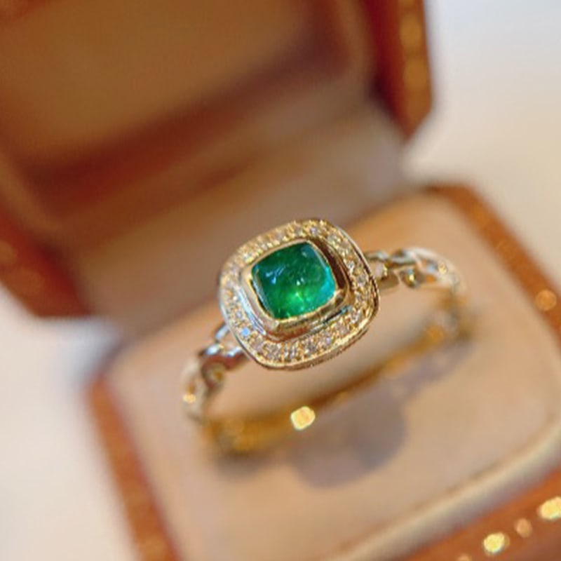 14k Gold 1 Ct Natural Emerald & Diamond Ring