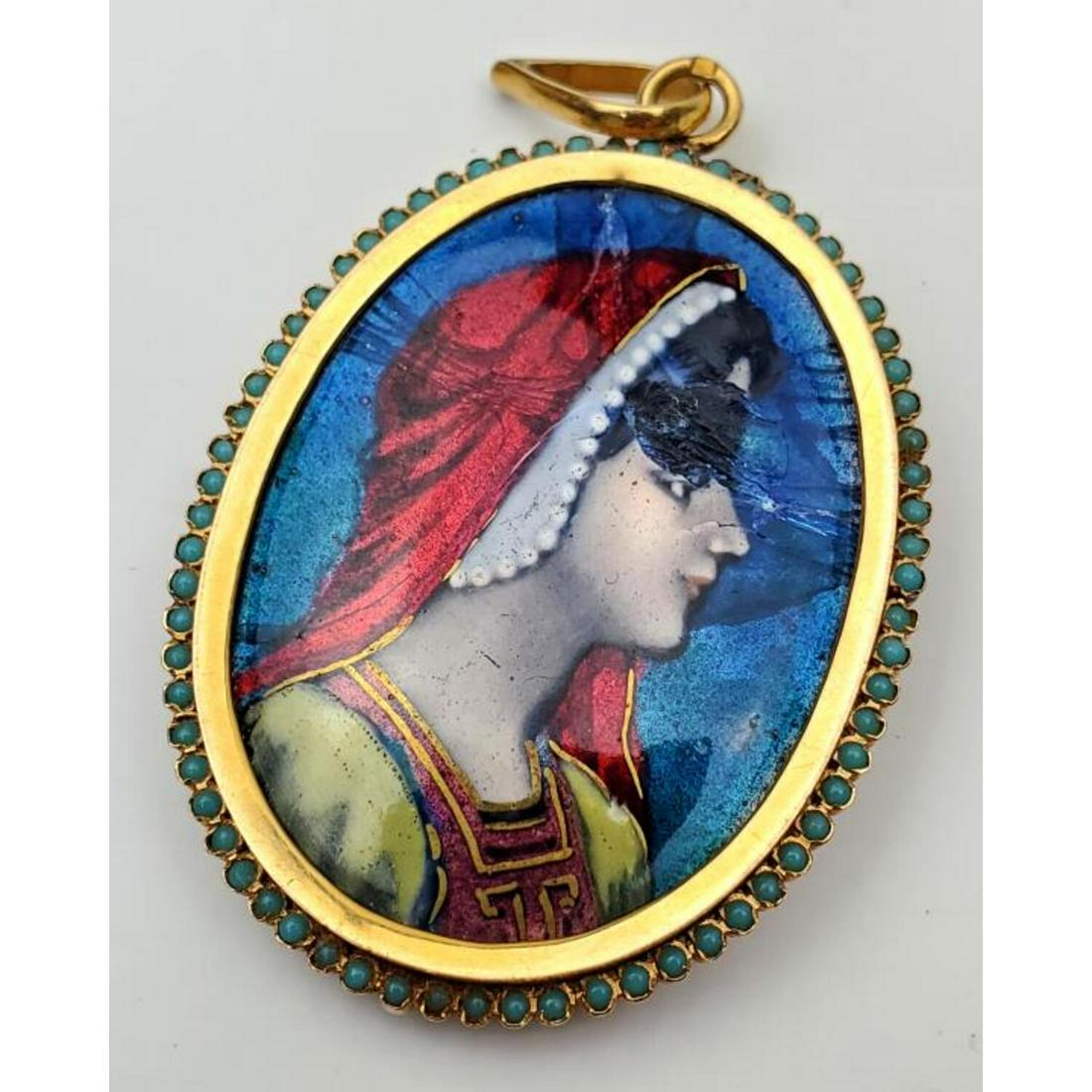 Vintage 13k Yellow Gold Hand Painted Portrait Pearl Brooch PendantDiamond Depot4.3(10)$1,12517 hrs Left