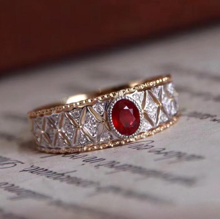 18K GOLD FULL DIAMOND INLAID NATURAL RUBY RING