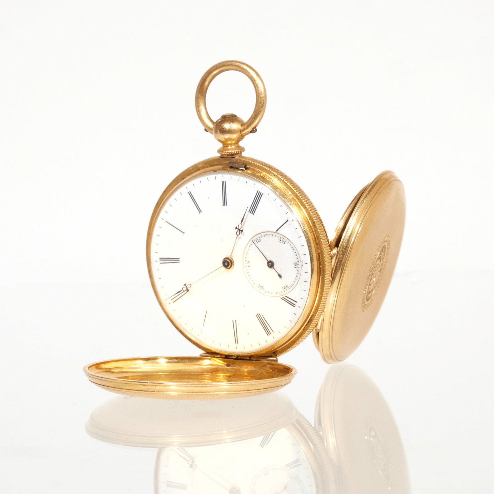 18k GOLD HUNTER CASE ENGINE TURNED LADY'S LAPEL