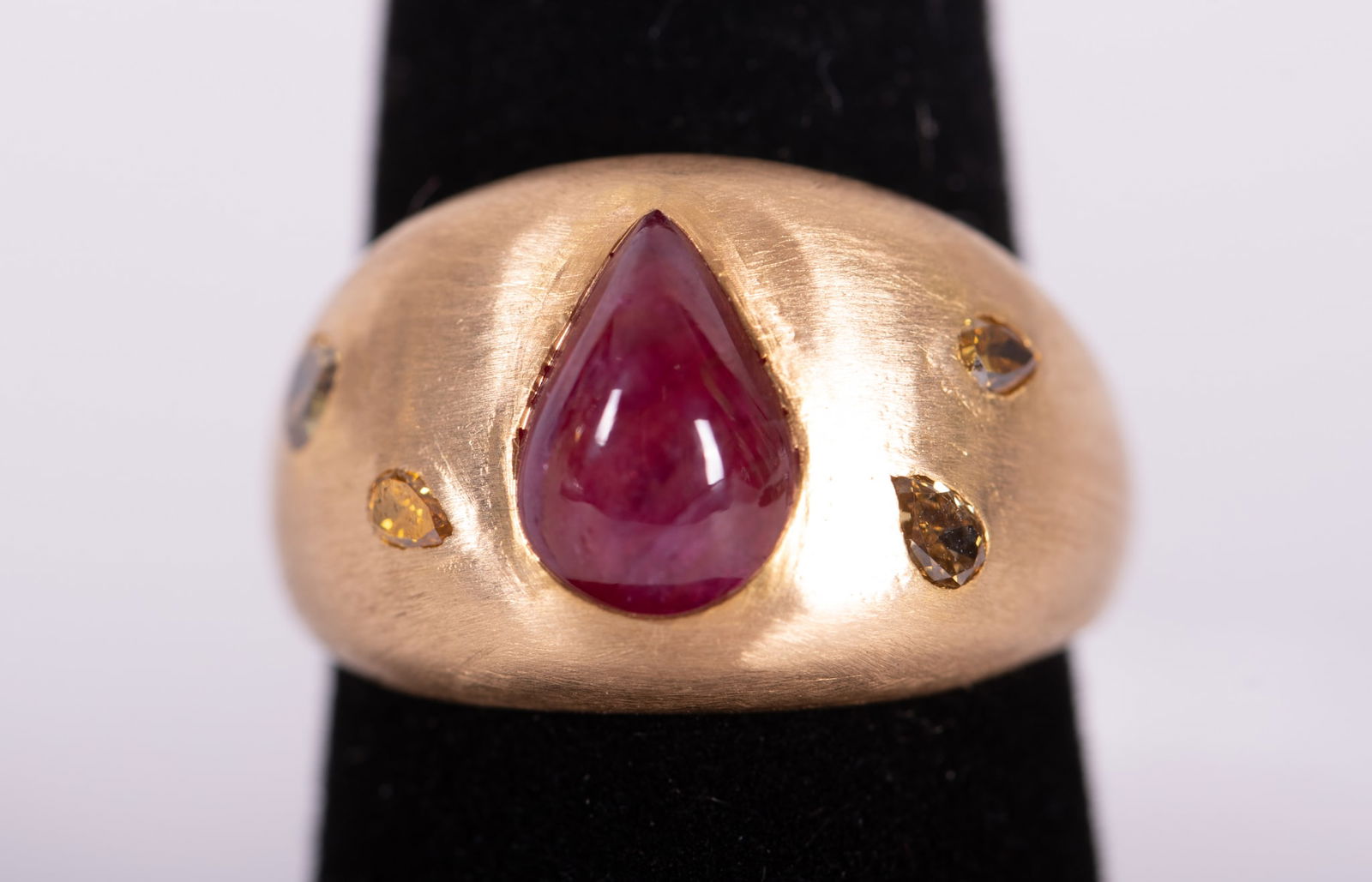 18K Gold Natural Ruby Cabochon and Diamond Ring