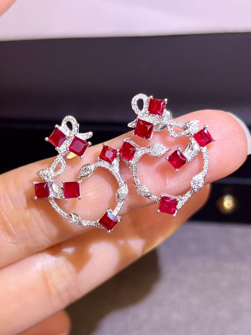 14k Gold 11.25 Ct Natural Ruby & Diamond Earrings