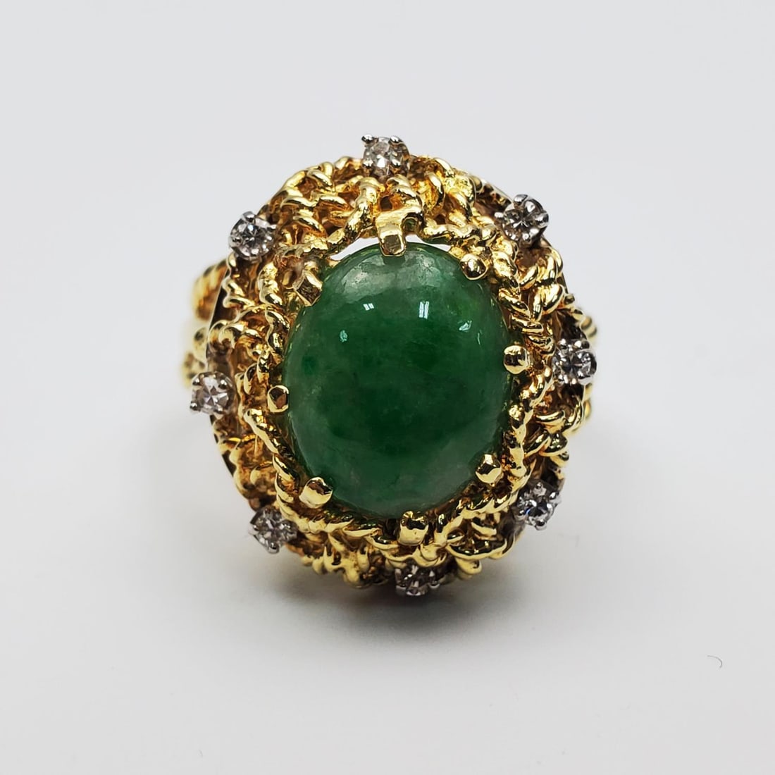 14k Yellow Gold 9.41ct Jade 1.27ct Diamond Ring