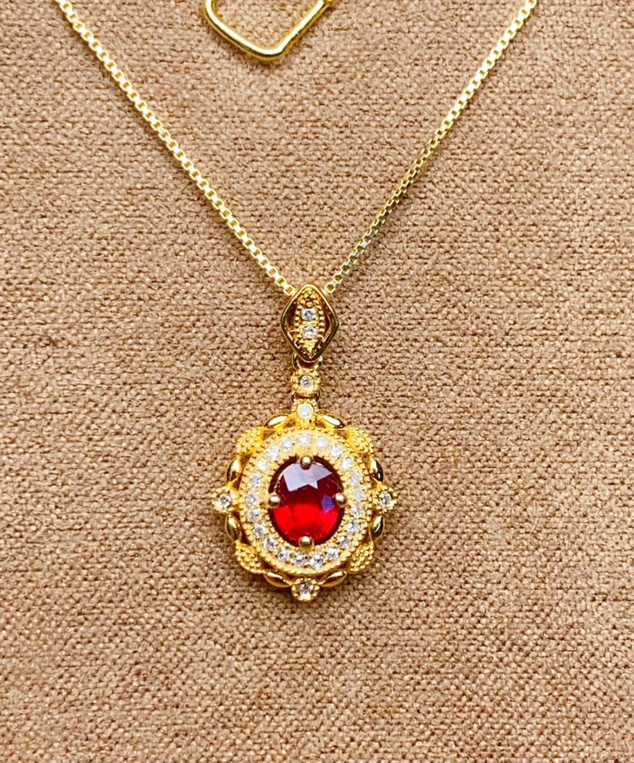 Sold18k yellow gold ruby pendantPendant with 01 piece natural ruby (total 0.56ct) and 8 pieces diamond (total 0.06ct)See Sold Price
