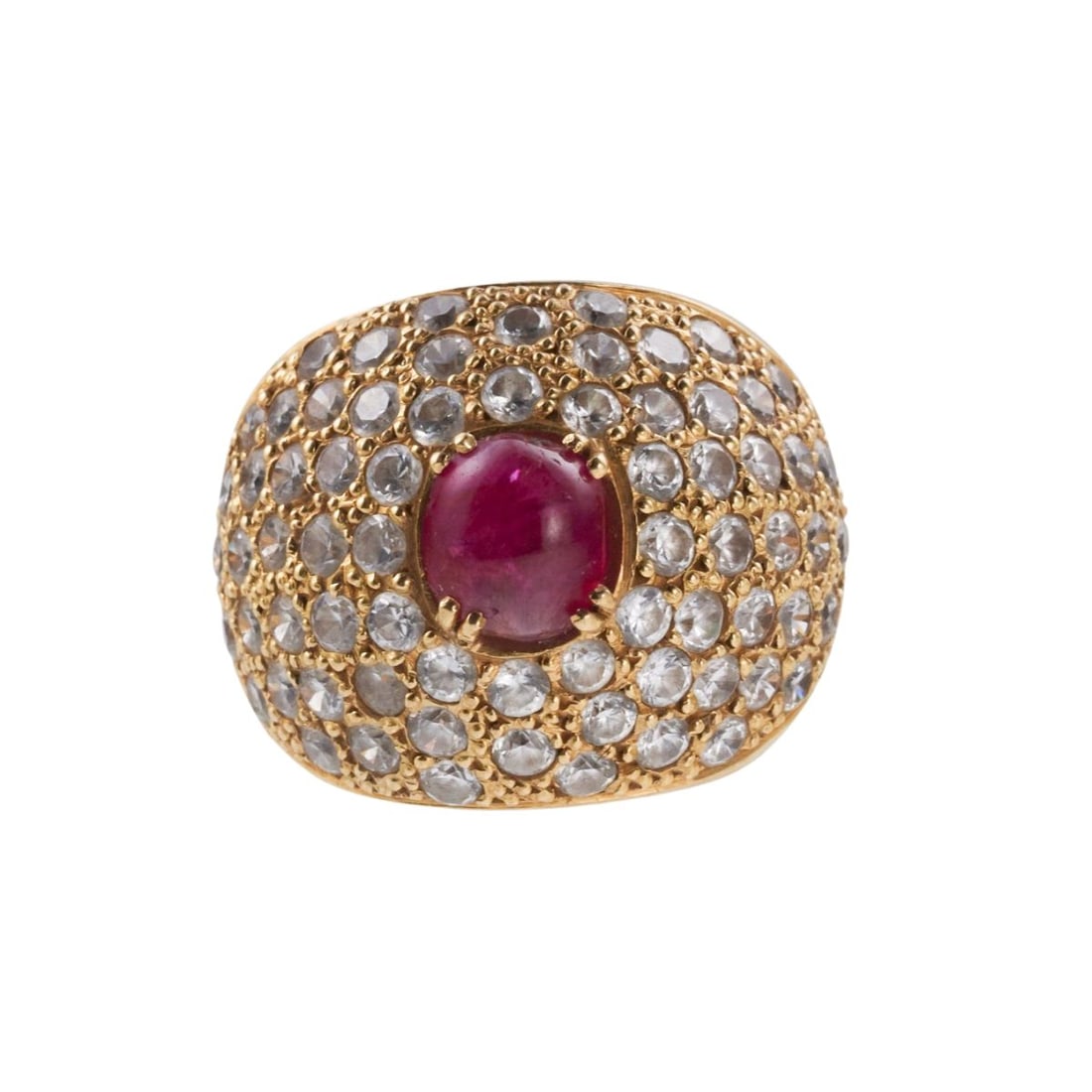 18k Gold Sapphire Ruby Cocktail Dome Ring