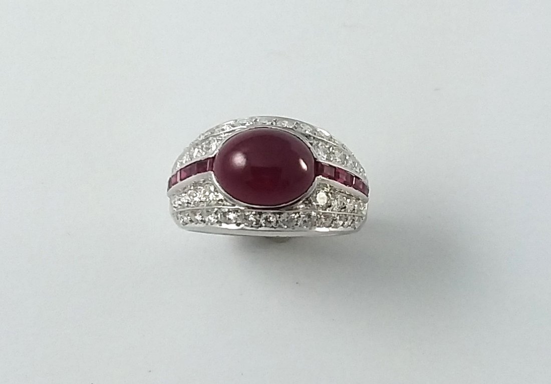 18k Gold Very Fine Cabochon Ruby and Diamond Ring