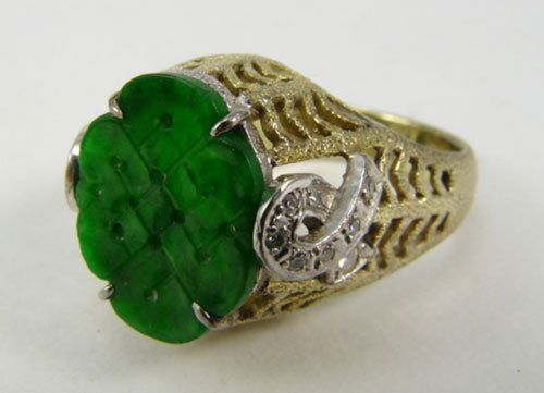 Exclusive 14K Yellow Gold 0.15ct Diamond and Jade RingEastern European Art Gallery Inc$2,3005 days Left