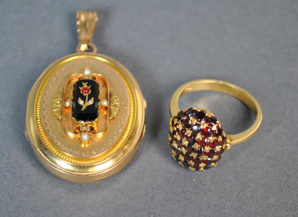 18K MOURNING LOCKET AND RING