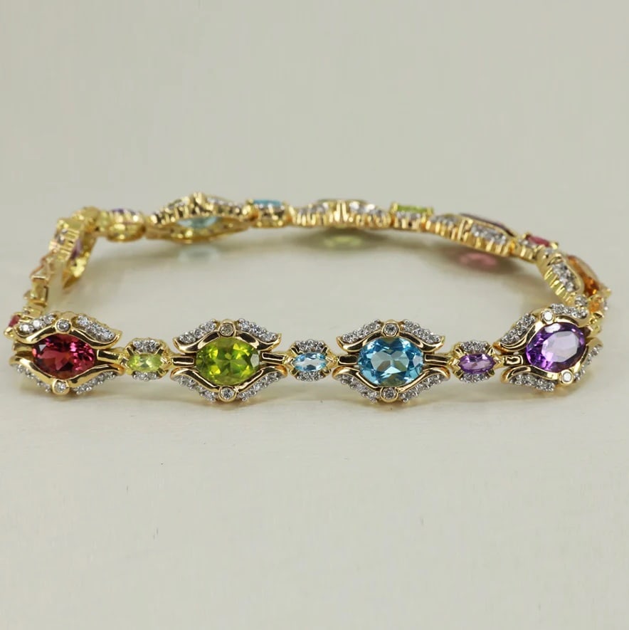 Vintage 14k Yellow Gold Bracelet with Tanzanite Pink Green TourmalineDiamond Depot4.3(11)$4,25014 hrs Left