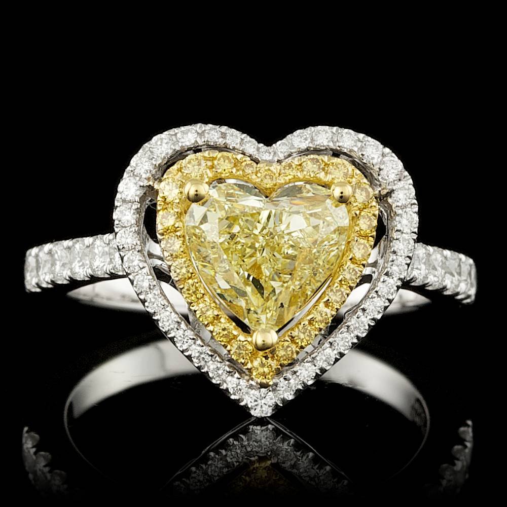 Sold18k White Gold 1.48ctw Orange-Yellow Diamond & 0.39ctw White Diamond RingThis exquisite ring features five multi-shaped orange-yellow diamonds totaling 1.48 carats, their vivid tones radiating warmth and brilliance. They are complemented by 48 round brilliant white diamondSee Sold Price