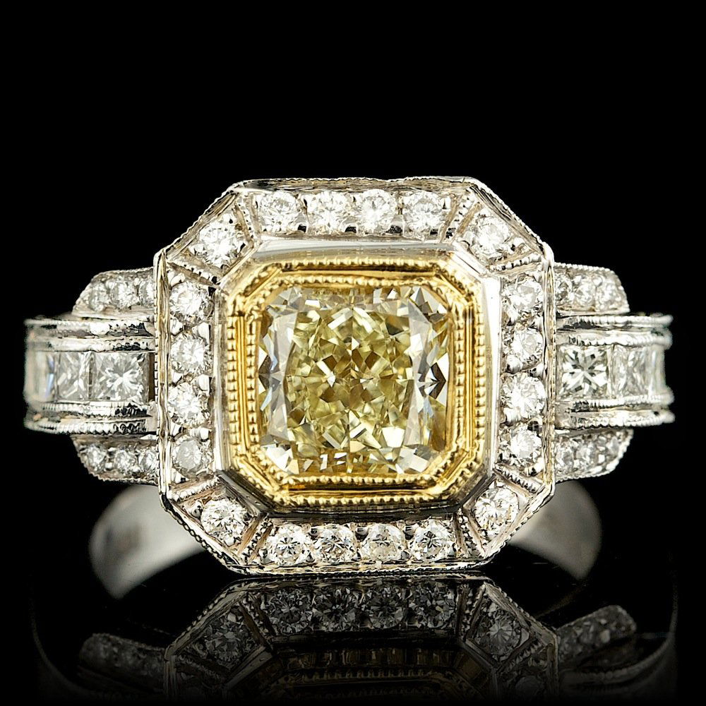 Sold18k Two Tone Gold Diamond RingMETAL: 18k Gold. MEASUREMENTS: Ring size 6.75, top is 17mm x 23mm. GEMSTONES: Diamonds approx. 1.80-2.00ctw. TESTED: 18k. WEIGHT: 16.1 grams.Gemstones have not been graded for color and clarity ,and tSee Sold Price