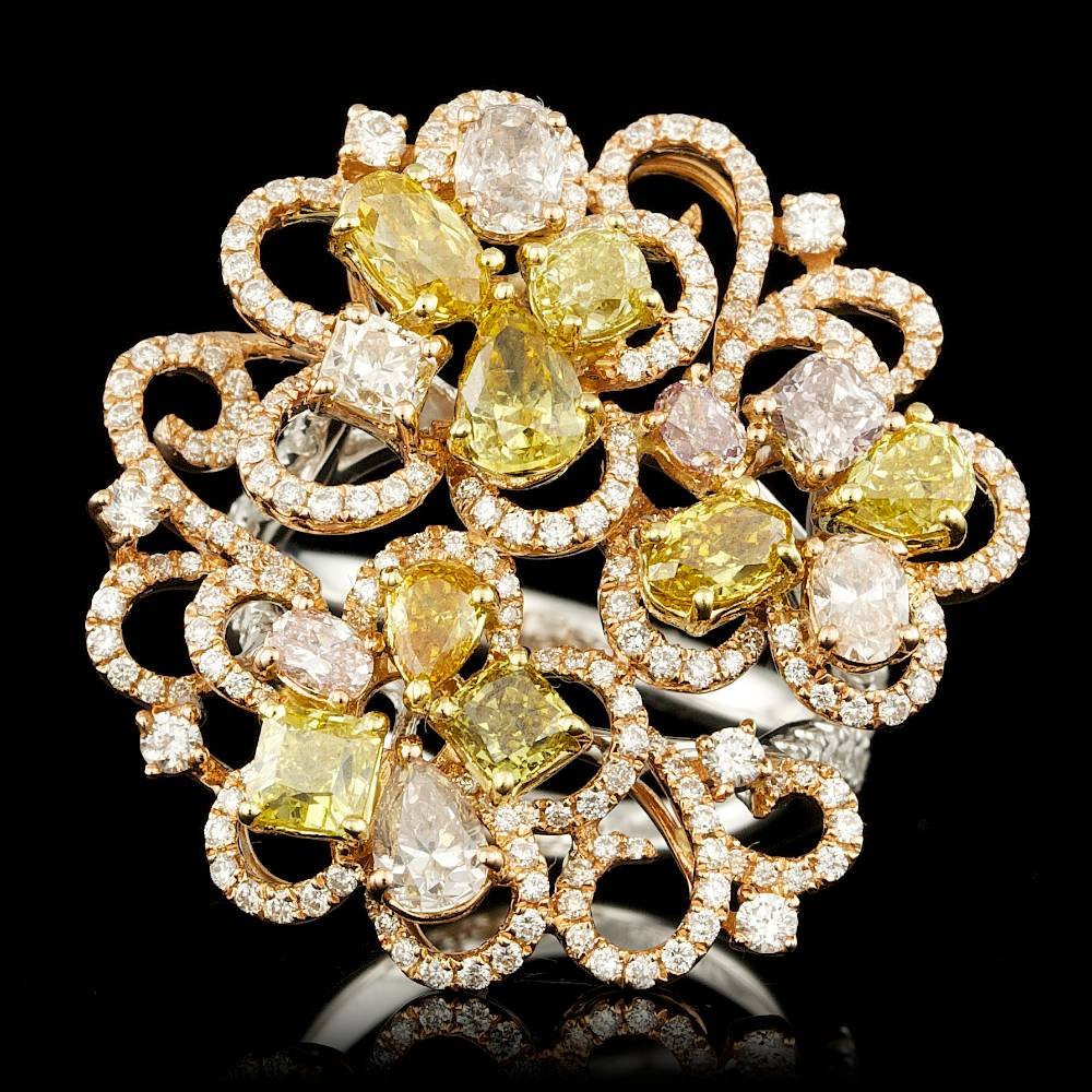 SoldCERTIFIED EXTRA LARGE 4.39CT MULTI COLOR DIAMOND 18K 2 TONE GOLD ENGAGEMENT RINGGIA CERTIFIED EXTRA LARGE 18KT WHITE AND YELLOW GOLD ENGAGEMENT RING. 3D CLASSIC HALO DESIGN. WHITE DIAMONDS ARE F/G COLOR, VSSI CLARITY .77 CARATS. PEAR SHAPE FANCY DEEP BROWN DIAMOND IS VVS2 CLARITYSee Sold Price