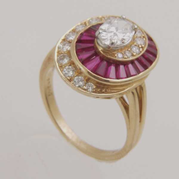 18K OSCAR HEYMAN DIAMOND & RUBY RING