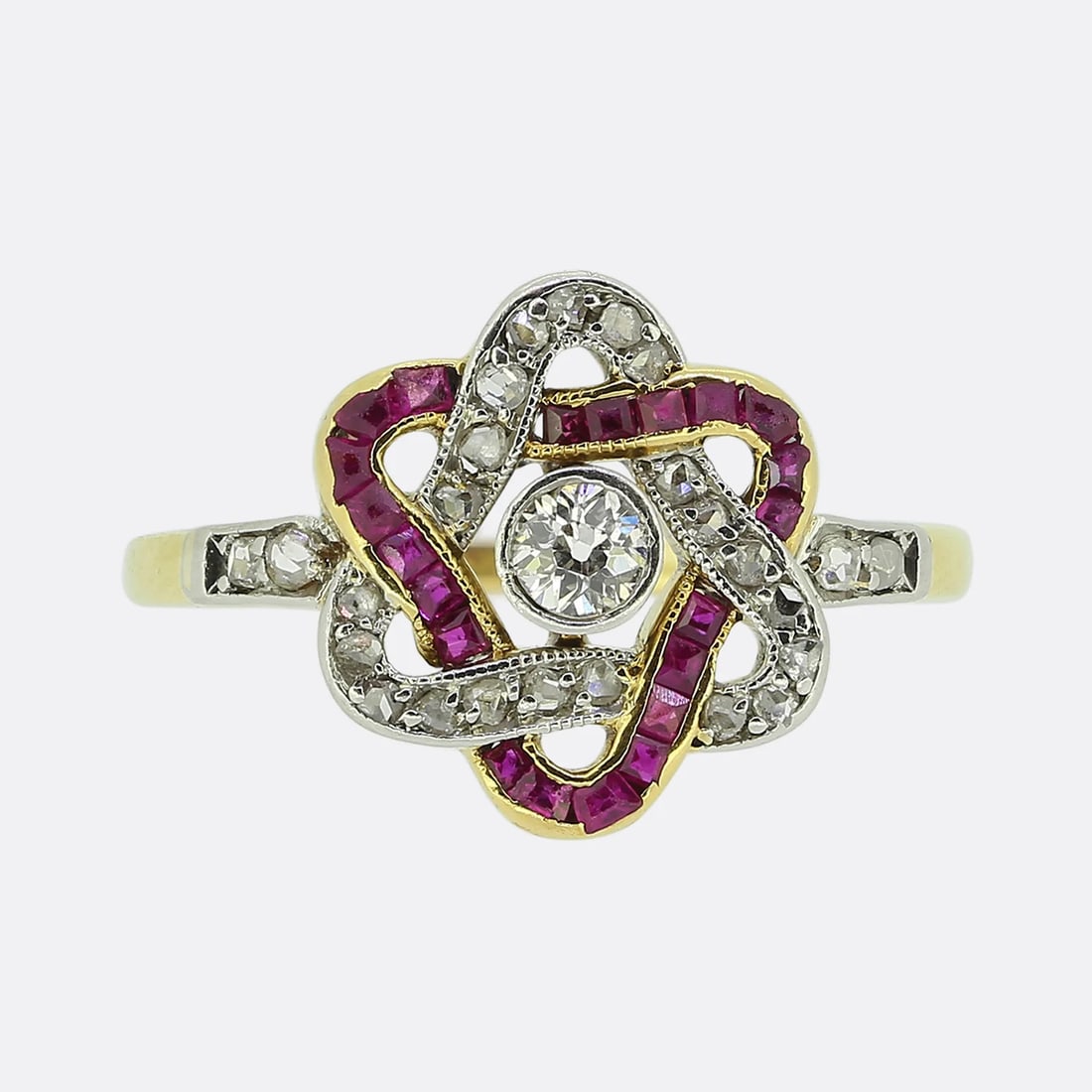 18k Gold Platinum Diamond & Ruby Ring