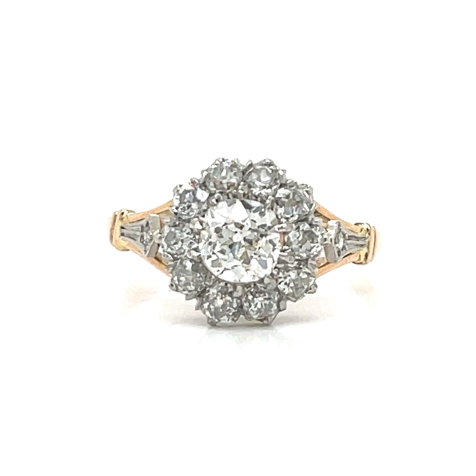 Sold1920' 18k & Platinum Diamond Rosetta Ring1920' 18k Yellow Gold & Platinum Weight 4gr Old Miner Diamond Approx 2ct SI1 K Measurement 0.5”x0.5” Rosetta Ring Size 7.75See Sold Price