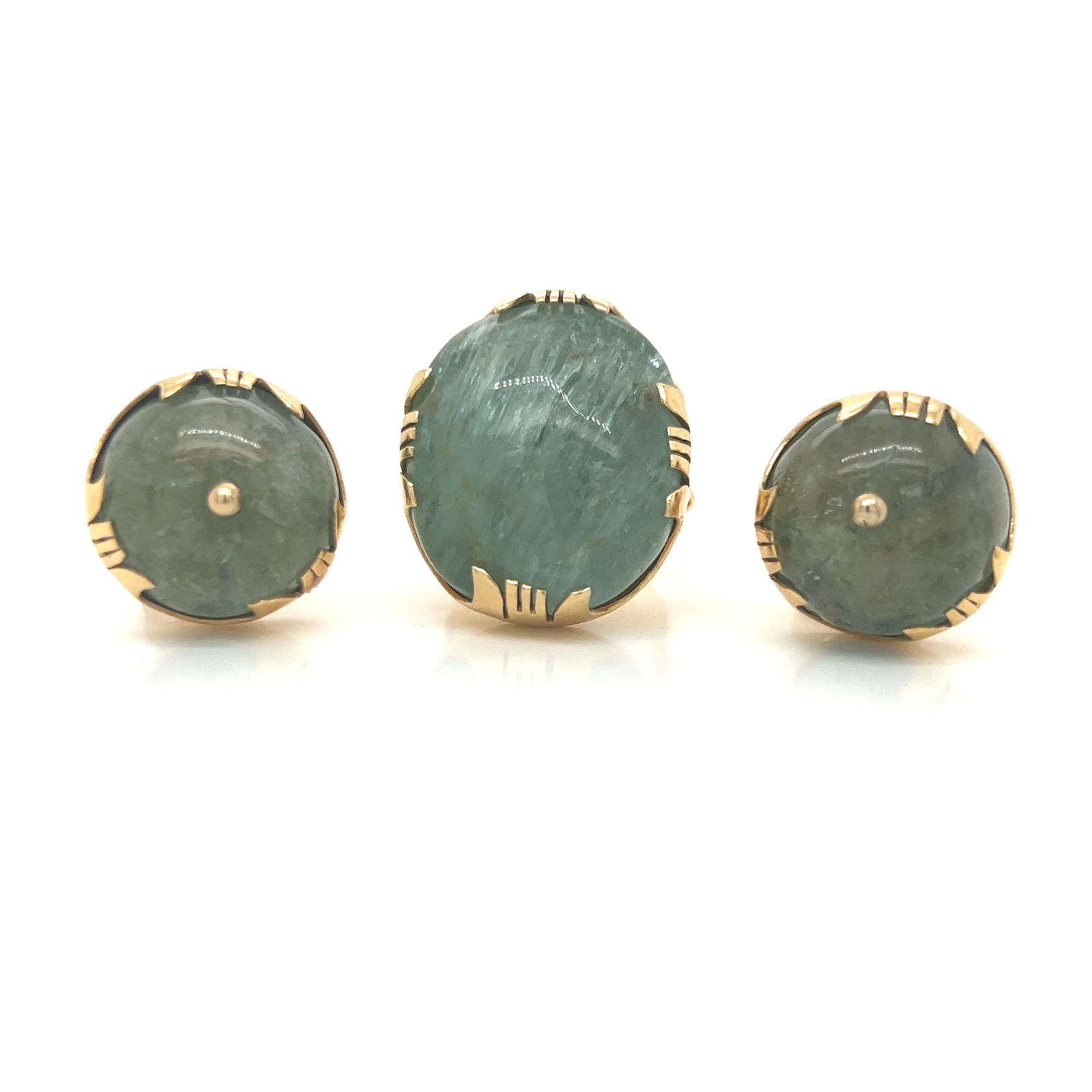 18k Retro Green Aqua Ring Earring Set
