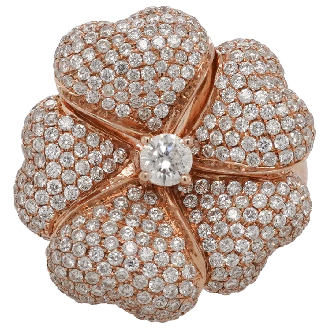 18k Rose Gold and Diamond Clover Ring