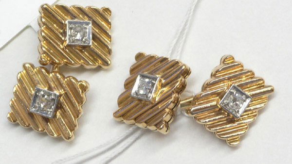 1.20ct. natural round diamond classic x earrings 14kt clip**Pair of 1960s 18K Gold Cufflinks with Diamonds 20.6g2 days LeftOctagonal Antique 14k Gold and Platinum Engraved Grooved CufflinksFeb 20, 202614K YELLOW GOLD CUFFLINKS SET WITH 0.09CTS VS NATURAL DIAMONDS 10.8GFeb 22, 2026Elegant Yellow Gold Cufflinks with Diamond accentsFeb 15, 20267 Pairs of Gold Filled or Gilt Metal CufflinksFeb 26, 2026Art Deco 14K Gold Cufflinks with 40 Sapphires 3.00 Ct3 days LeftVintage 24k Gold Nugget 14k Buttons Cufflinks Set6 days Left18KT White and Yellow Gold,Pair of Natural Diamond Earrings # 2745Feb 22, 2026[JEWELRY, ART] 18K Gold & Diamond Ball CufflinksMar 05, 202614kt Yellow Gold 0.8ctw Diamond EarringsFeb 16, 2026Valentin Magro 18K Gold Diamond Cufflinks Signed Cushion Design3 hrs LeftVICTORIAN ROSE GOLD CUFFLINKS/STUDSFeb 22, 202614kt Yellow Gold 1.4ctw Diamond EarringsFeb 16, 2026Mens Vintage 14k Yellow Gold Belt Buckle CufflinksFeb 15, 202614kt Yellow Gold approximate 0.20ctw Diamond Bezel Set X EarringsFeb 15, 2026
