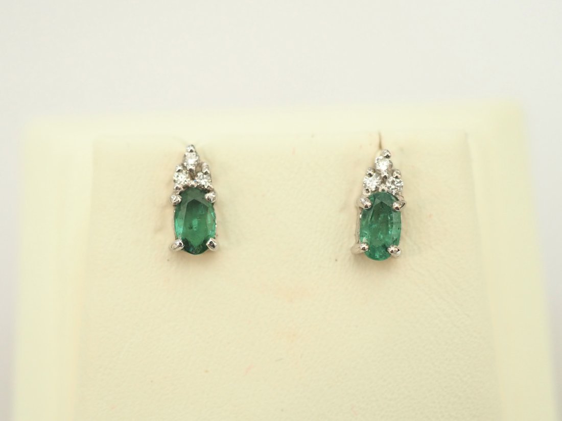 Emerald and Diamond 14K Stud Earrings