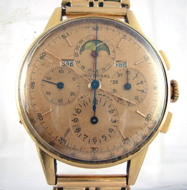 Universal Genève. A stainless steel and gold automatic chronograph wristwatch Universal Gen...Bonhams4(388)€600(1 bid)