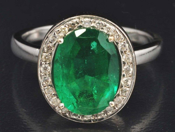 18K W. Gold Diamond & Emerald Ring.