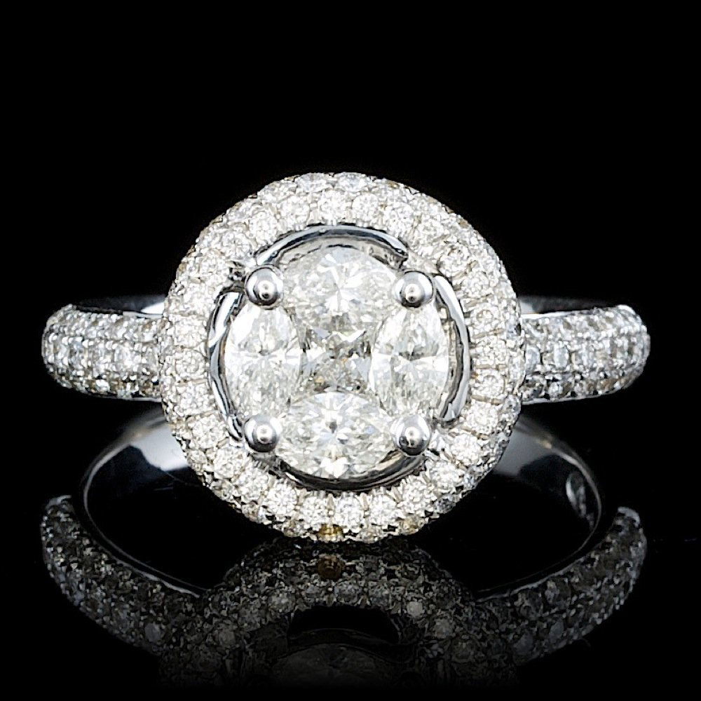 18K White Gold Ladies Ring with 1.24ct center Round Diamond and 1.19ct tw Adjacent DiamondsRiverside Galleries4.4(200)$506 days Left