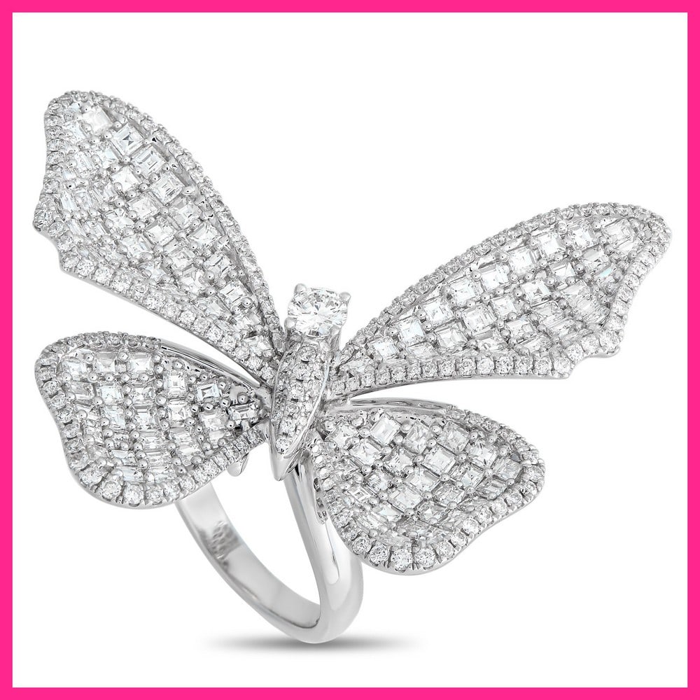 18K White Gold 5.19ct Diamond Butterfly Statement Ring