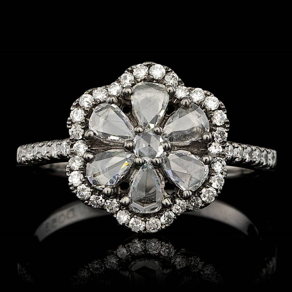 Sold18K WHITE GOLD DIAMOND RINGSIZE 9.5 LADIES DIAMOND CLUSTER RING, OVER 1 KARAT TOTAL WEIGHT. 17 DIAMONDS.See Sold Price